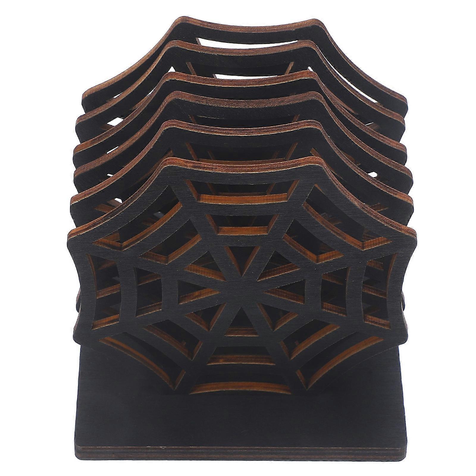 Wooden Spider Web Coaster Halloween Coasters for Insulation 1Set