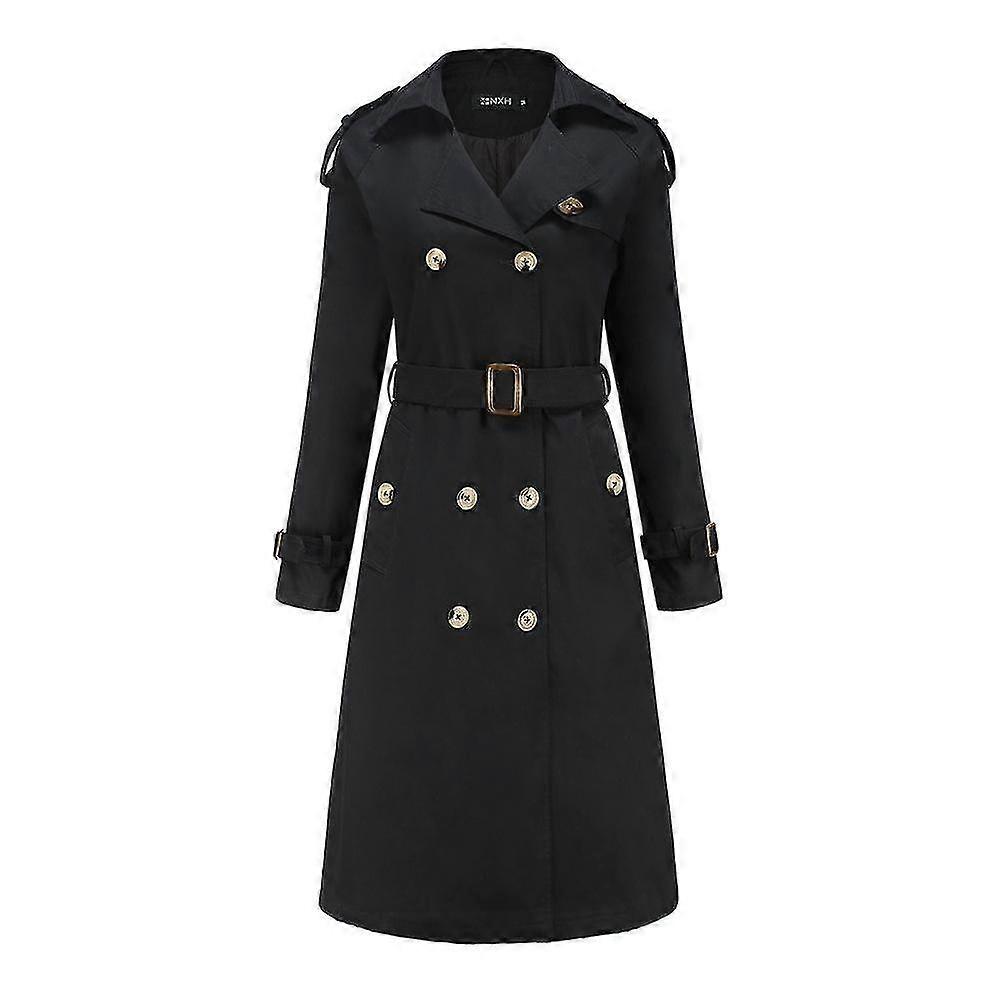 Women's Trench Coat Long Double-Breasted Fall Fashion Classic Lapel Slim Overcoat
