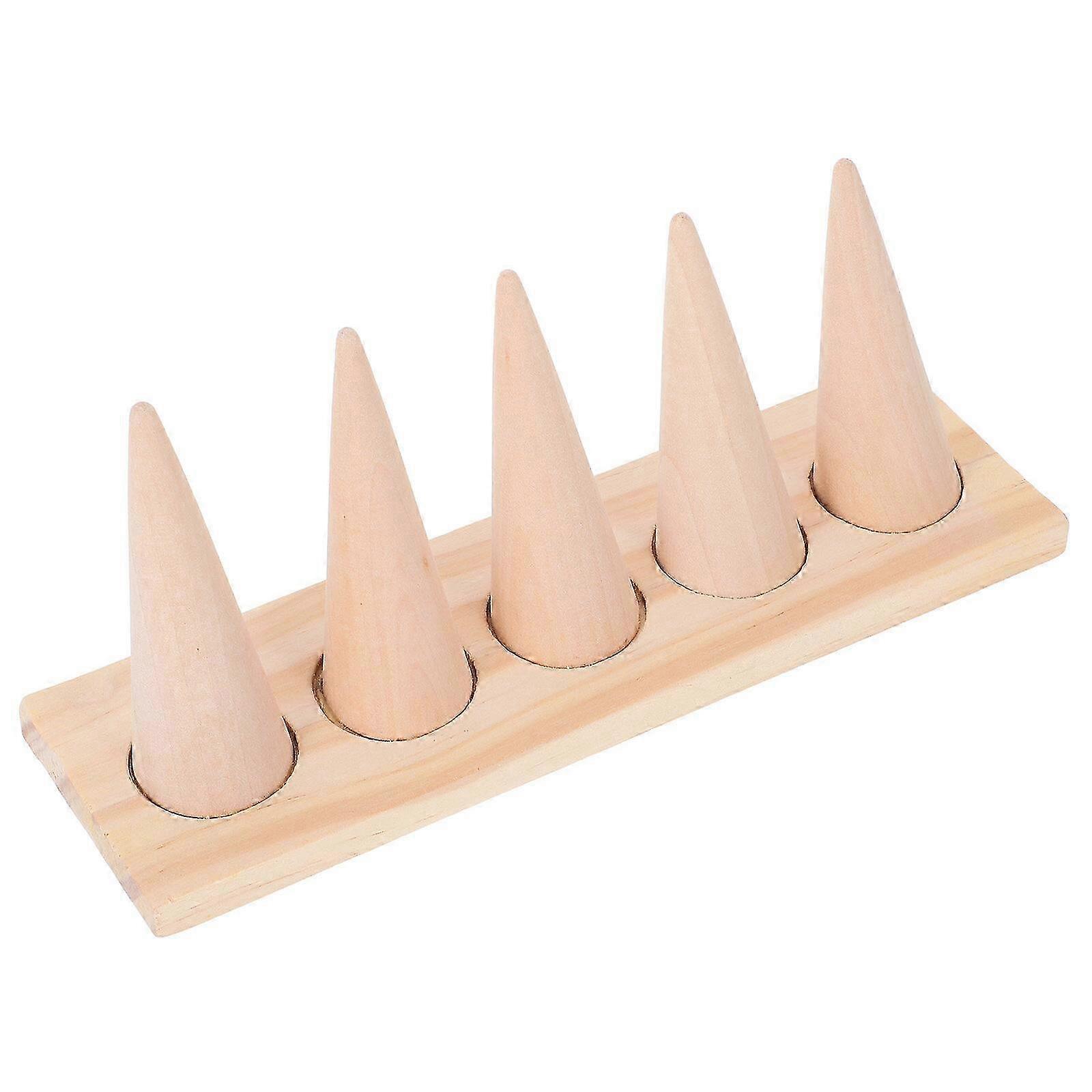 Wooden Ring Rack 5-Cone Display Stand for Desktop Finger Rings