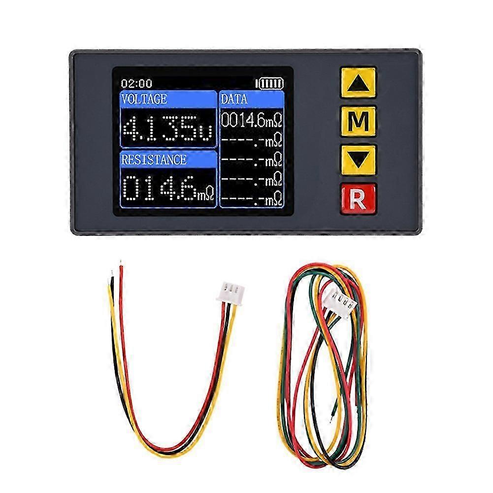 1. Voltage display fine-tuning: our voltage tester supports voltage display fine-tuning function, which allows users to make fine adjustments to the measurement results to ensure accurate readings and meet the needs of professional-level testing. 2. internal resistance display fine-tuning: also with internal resistance display fine-tuning function, whether it is a small resistance or large resistance measurement, can easily realize the precise adjustment, improve the accuracy and reliability of the test. 3. Adaptive visual experience: 1-9 grades of backlight brightness adjustment design, whether working in bright light environment or dim conditions, users can adjust the screen brightness to the most comfortable state according to the actual situation, to protect eyesight and enhance the ease of operation. Note: Prohibit the test of AC power, prohibit the test of more than 45V voltage Working voltage: DC5V (do not over-voltage power supply) Test principle: AC 4-wire method Voltage testing range: 0.001V-45.00V Maximum resolution 0.001V Internal resistance measurement range: 0.1m-6.999 Maximum resolution 0.1m Data Recording: Support recording 5 groups of internal resistance measurement data. Voltage display fine-tuning: support Internal resistance display fine-tuning: support Auto shutdown: Support 1-9 minutes standby time adjustment. Backlight Brightness: Support 1-9 levels of display backlight brightness adjustment. Please check as much as possible to make sure the item is what you need. Tips: The product may be updated constantly ,Due To Different Batches, The Actual Product May Have Slight Differences Or Color Differences, Which Does Not Affect Use Colour:Black Material:plastic Specifications:A: meter + 4P cable Package Contents: 1 x host with cable (the cabl