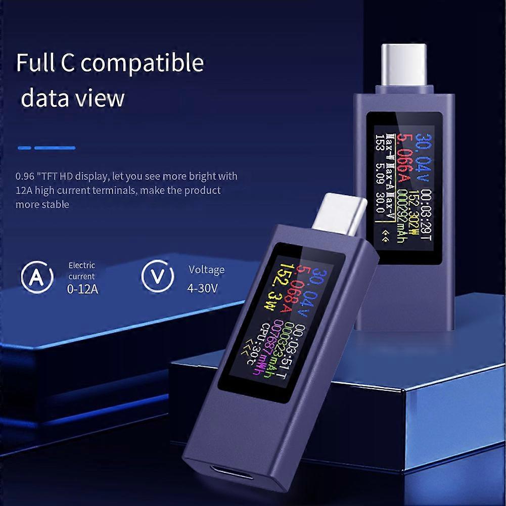 Type-C Multi-function Digital Display DC Voltage Ammeter Power Meter Cell Phone Charging Tester DC 4-30V 0-12A Battery Test