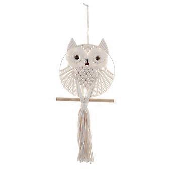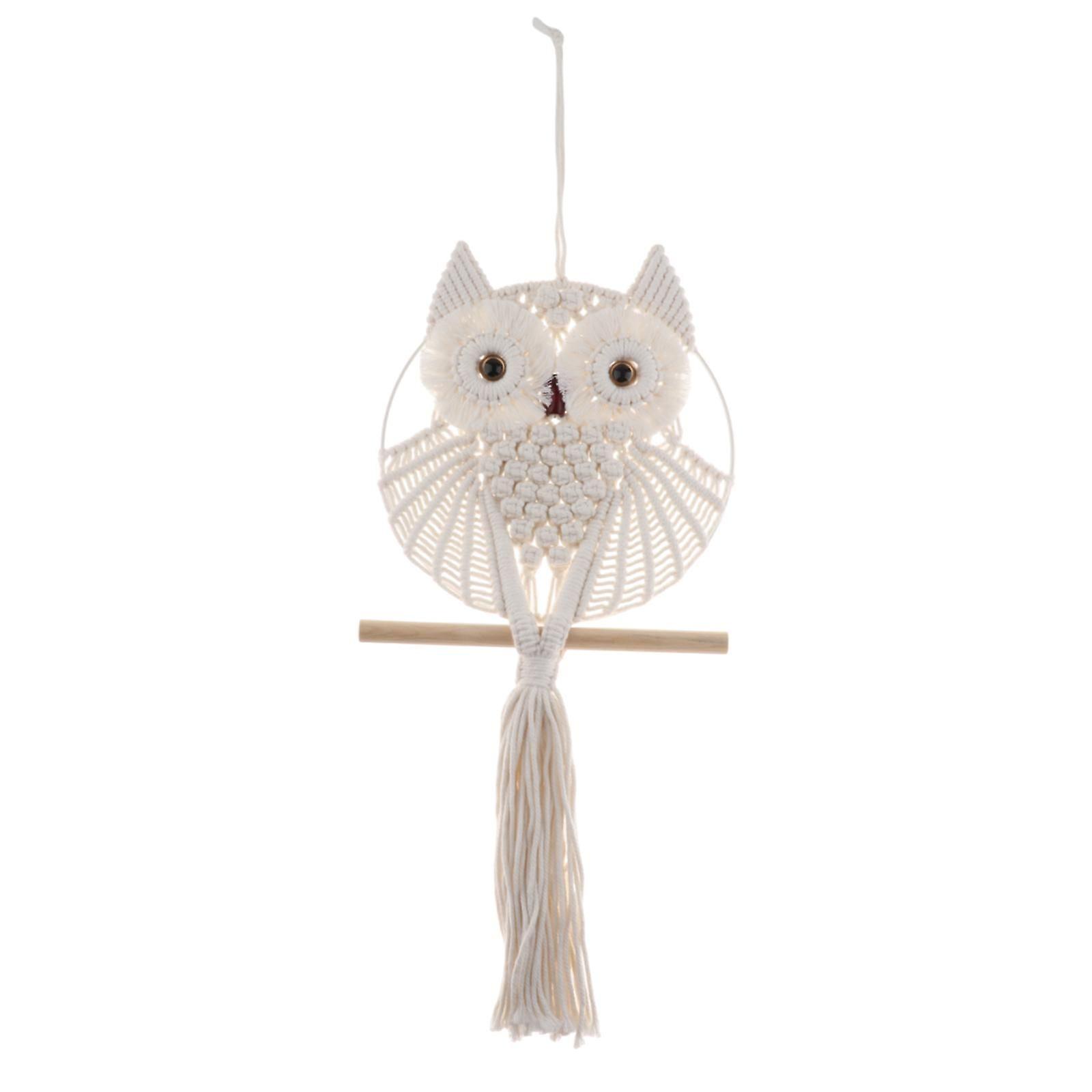 Owl Macrame Tapestry Chic Pendant Boho Tapestry for Dorm Bedroom Living Room Large White Ring