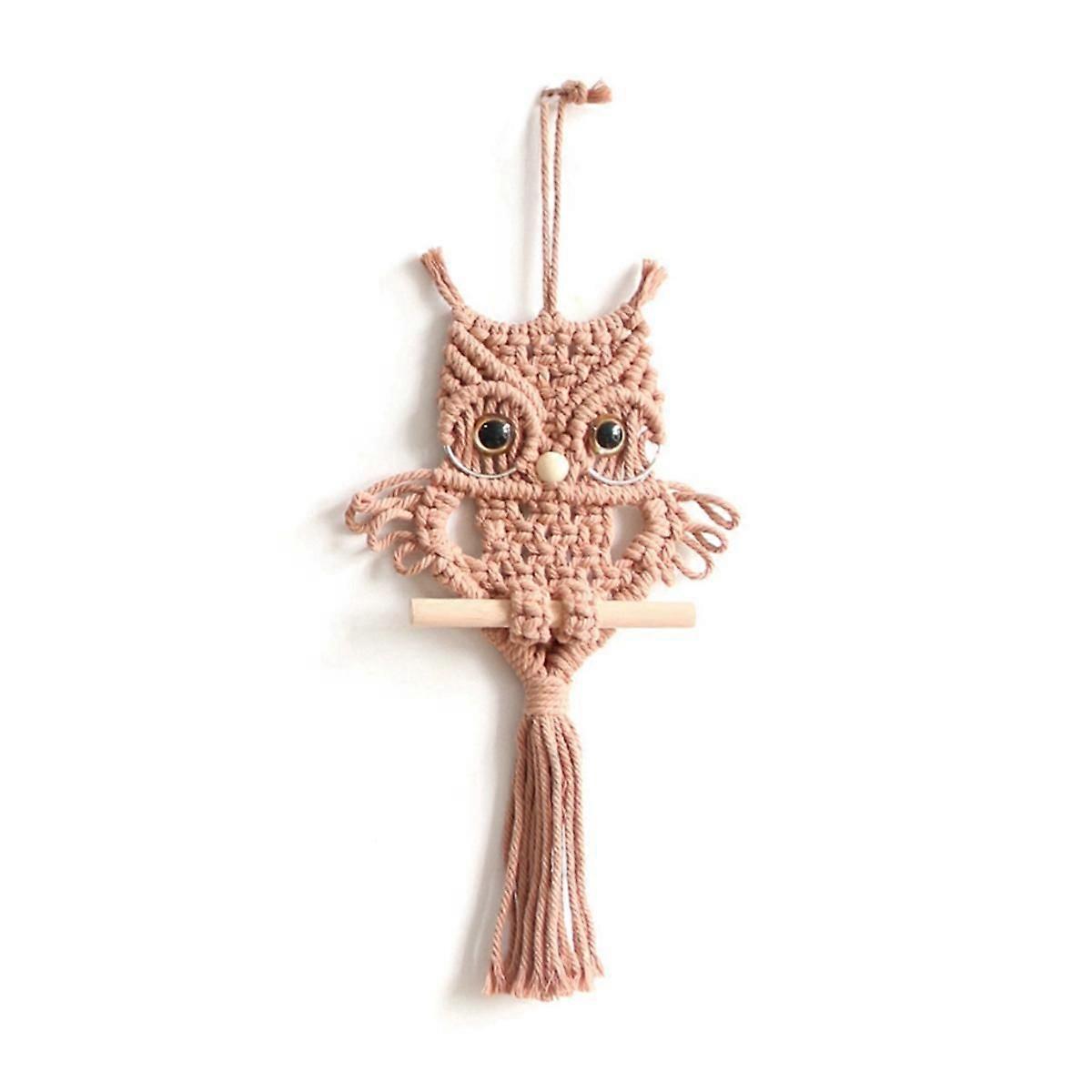 Owl Macrame Tapestry Woven Wall Hanging Pendant Ornament Woven Bohemian Tapestry Brick Red