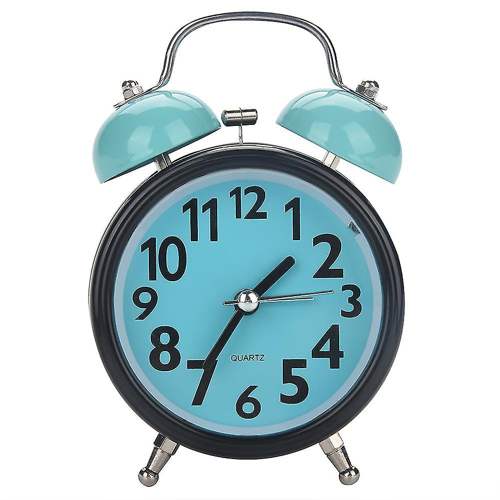 Ultra Silent Double Bell Mechanical Alarm Clock Quartz Movement for Desk Table Night Use Blue