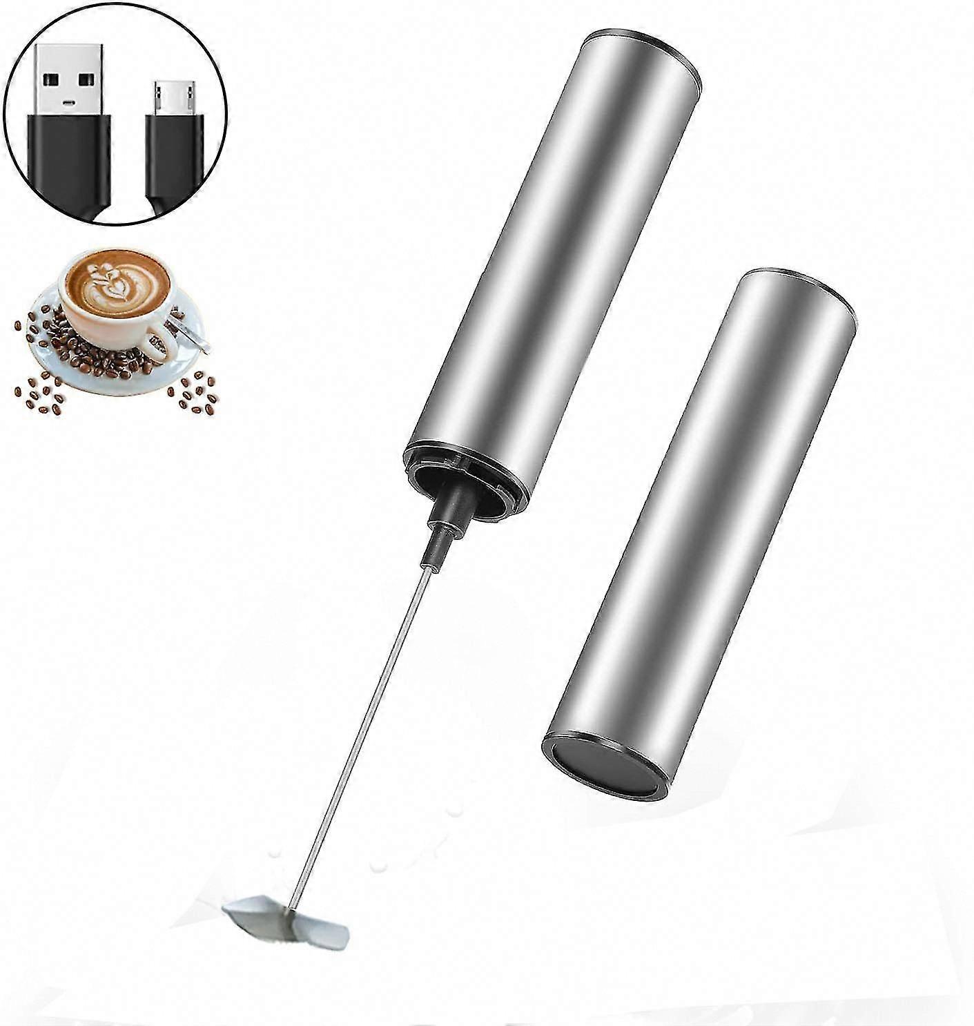 USB Rechargeable Electric Milk Frother, Dual Head Stainless Steel Mini Beater for Coffee, Cappuccino, Latte & Hot Chocolate