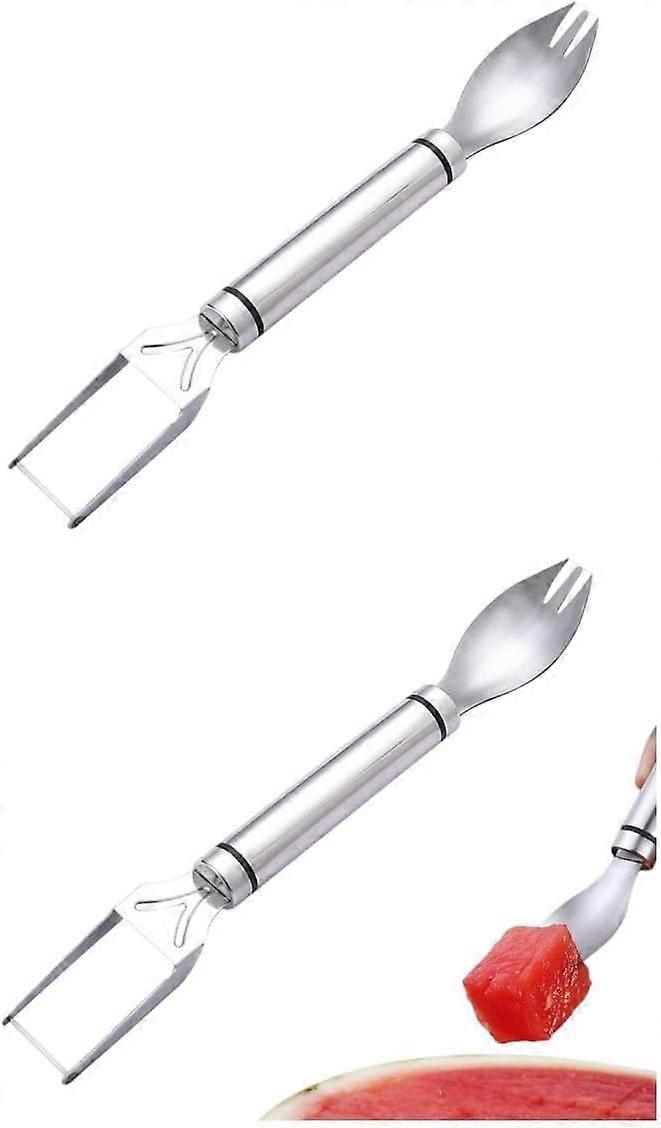 Watermelon Cutter, 2-in-1 Melon Cutter Fork, Watermelon Cutter Fruit Cutter, Made of Stainless Steel with Double Head