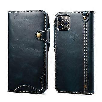 Veske Til Iphone 14 Blå Topplag Kortholder Anti-fall Flip Lær