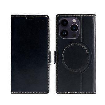 Veske Til Iphone 14 Pro Svart Trådløs Lading Mobiltelefon Lær Kortspor Lommebok