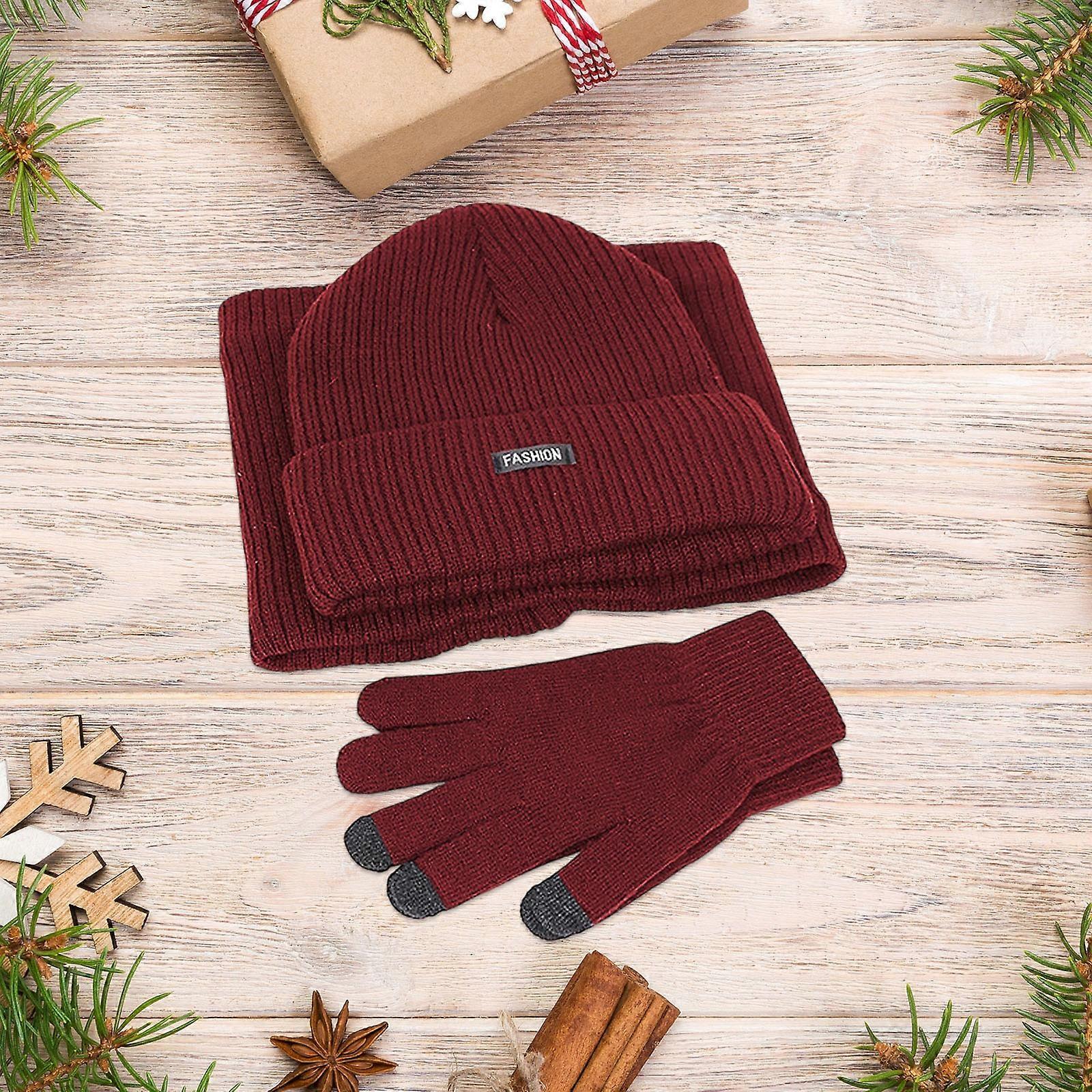 Winter Beanie Hat Scarf Gloves Set For Women 3 PCS Hat Long Neck Kint Scarf Touchscreen Gloves Christmas Gift