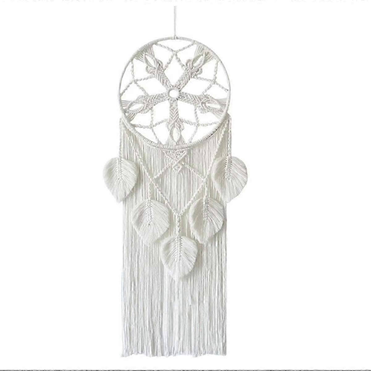 Material: the macrame wall hanging ornament is made of premium cotton cord, sturdy, durable. Dream catcher: the handmade macrame tapestry with wooden beads and green leaf decor ornament, weaving by skilled old , fine workmanship and well made. The macrame rope is natural and strong, ensuring the color of the dream catcher will never fade. Look as good as new even after prolonged use. Sweet : the dream catcher has the meaning of praying for peace and bringing good luck. It hangs in the kids room and can drive nightmares, making people dream of falling asleep. It can also be hung on the car for good luck! Beautiful room decor: the tapestry adds a loving cozy touch to your home decor, boho wedding, bridal shower, engagement party, baby shower, car decor, kids bedroom, sitting room, balcony, party decorative wall hanging ornament. Added the aesthetic to your room and regulated the energies. Nice gift: the dream catcher tapestry is a for girls, teen, granddaughters, nieces, partners, parents, and friends for birthday, Mother's Day, Father's Day, Thanksgiving, Valentine's Day, or Christmas, engagement parties, housewarming, wedding anniversaries, it's a that carries your wishes and love. Colour:White Material:cotton Size:Total length about 101cm Package Contents: 1 * wall hanging ornament Only the above package content, other products are not included. Note: Light reflection and different displays may cause the color of the item in the picture a little different from the real thing. The measurement allowed error is +/- 1-3cm.