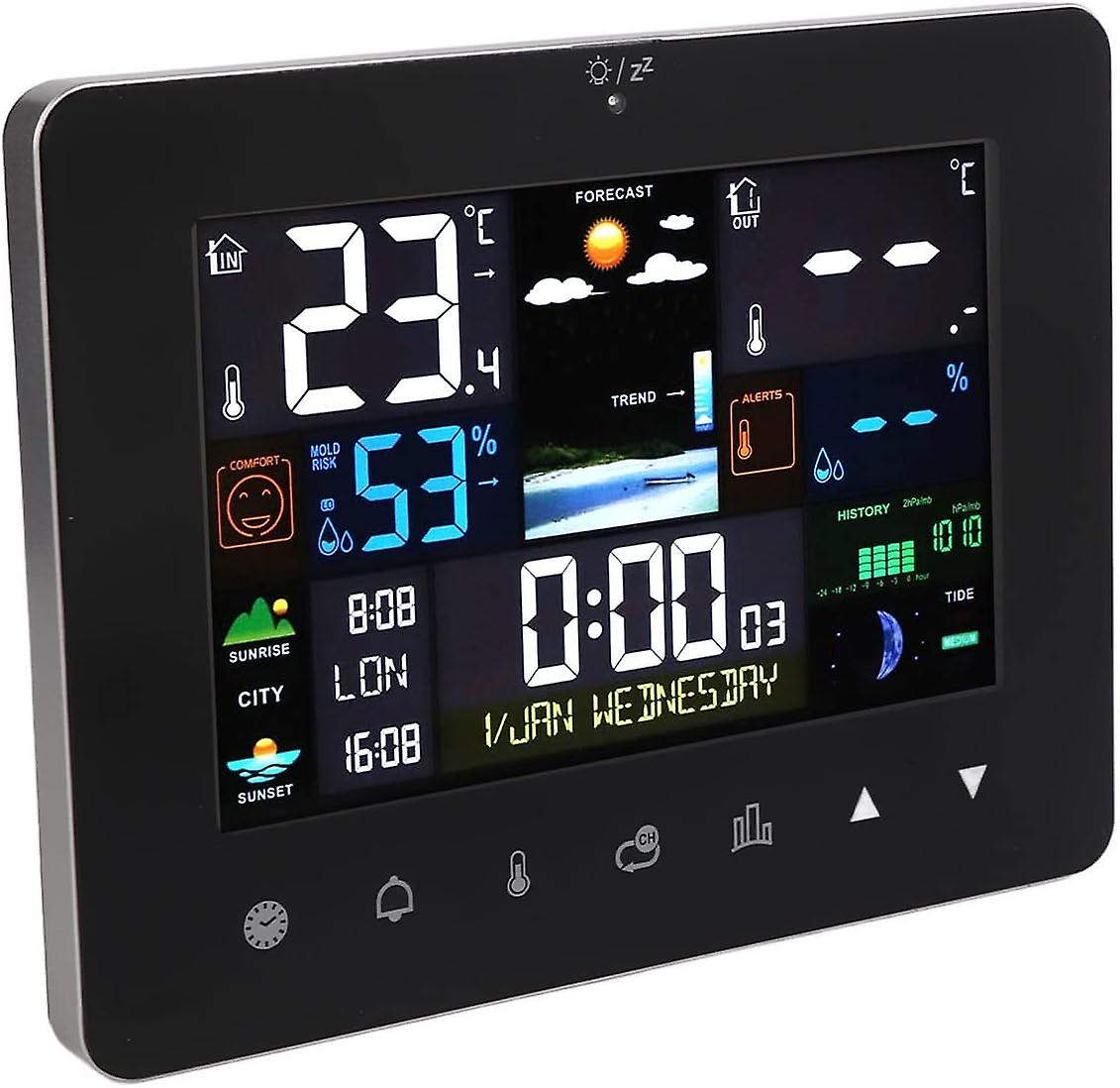 Weather Clock, Weather Station Wireless Thermometer, Color Display Digital Weather Thermometer with Atomic Clock, Forecast Station with Calendar and
