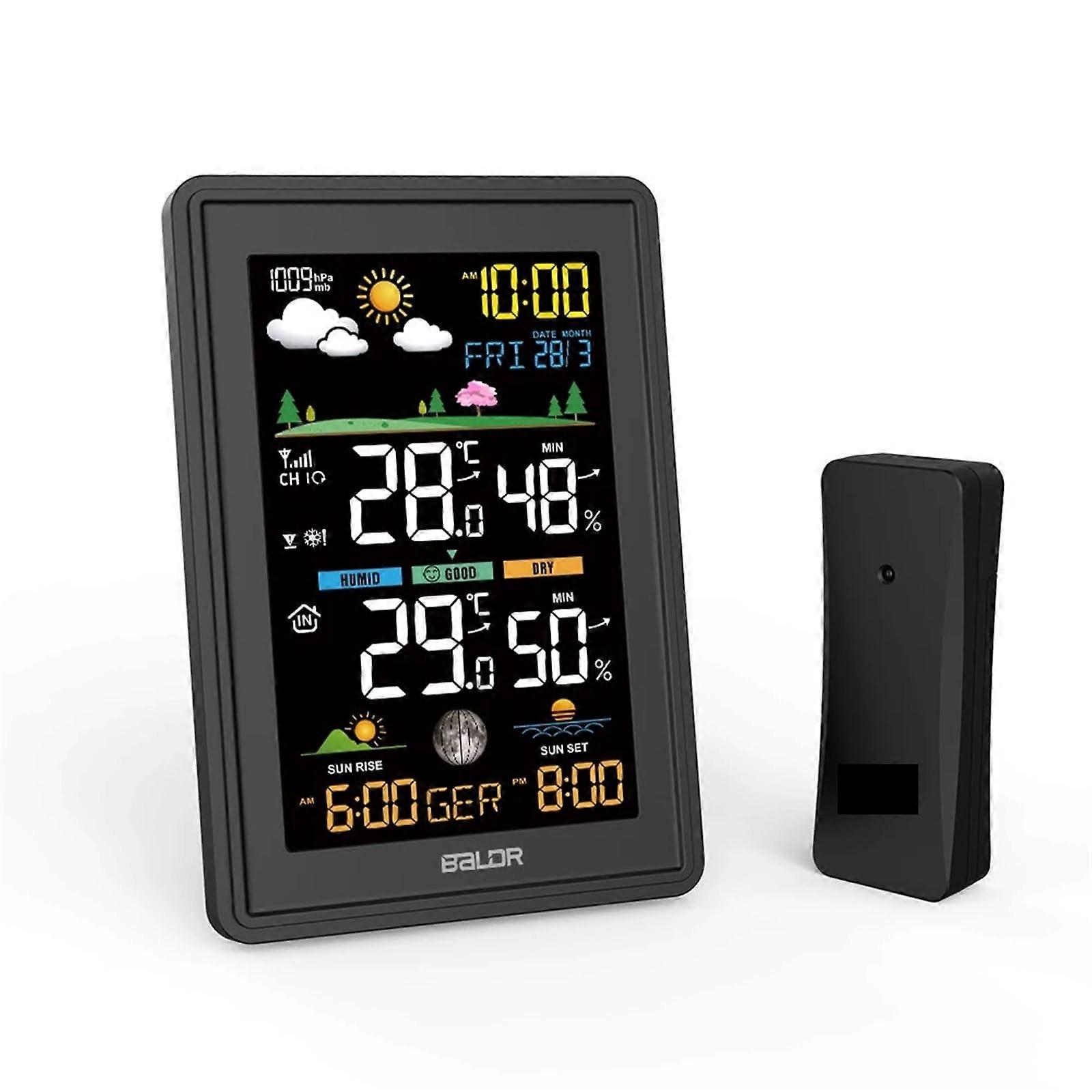 Wireless Color Weather Station with Alarm Clock, Barometer, Moon Phase, Sensor, 40℃ Nero
