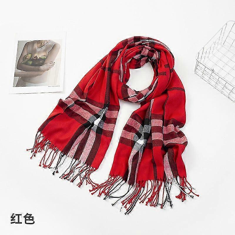 WXH Women's Scarf 2023 Autumn And Winter New Plaid Scarf Cashmere-like Warm Tassel Shawl
